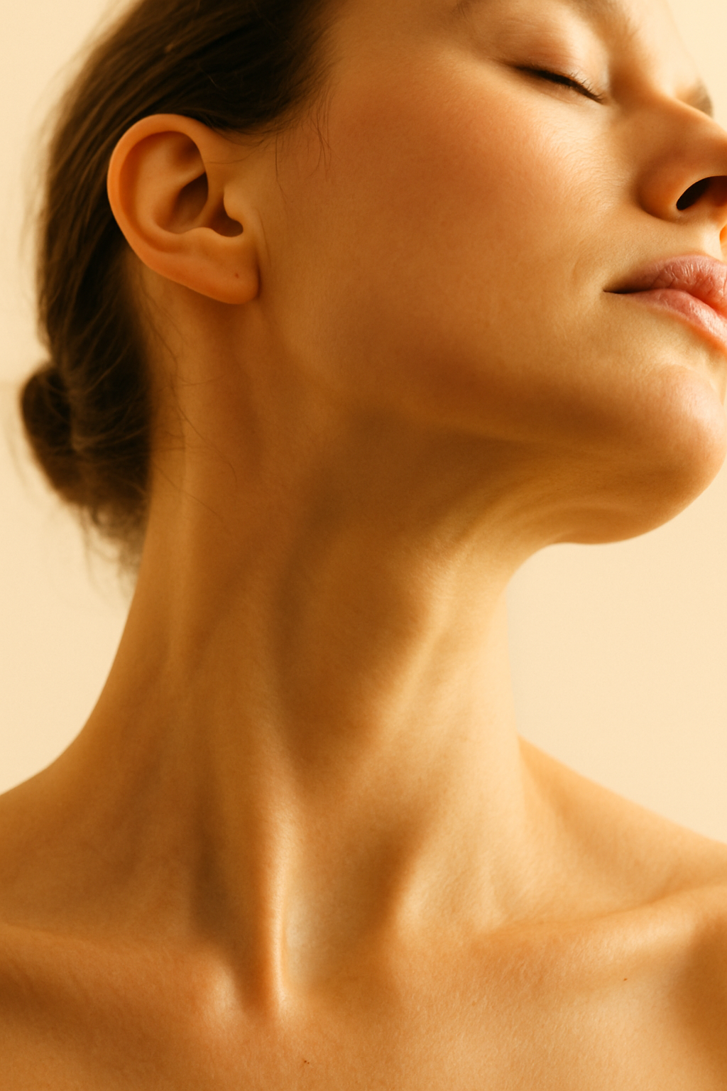 Les rides et ridules s’estompent progressivement, révélant une peau plus ferme et un cou redessiné avec élégance.
